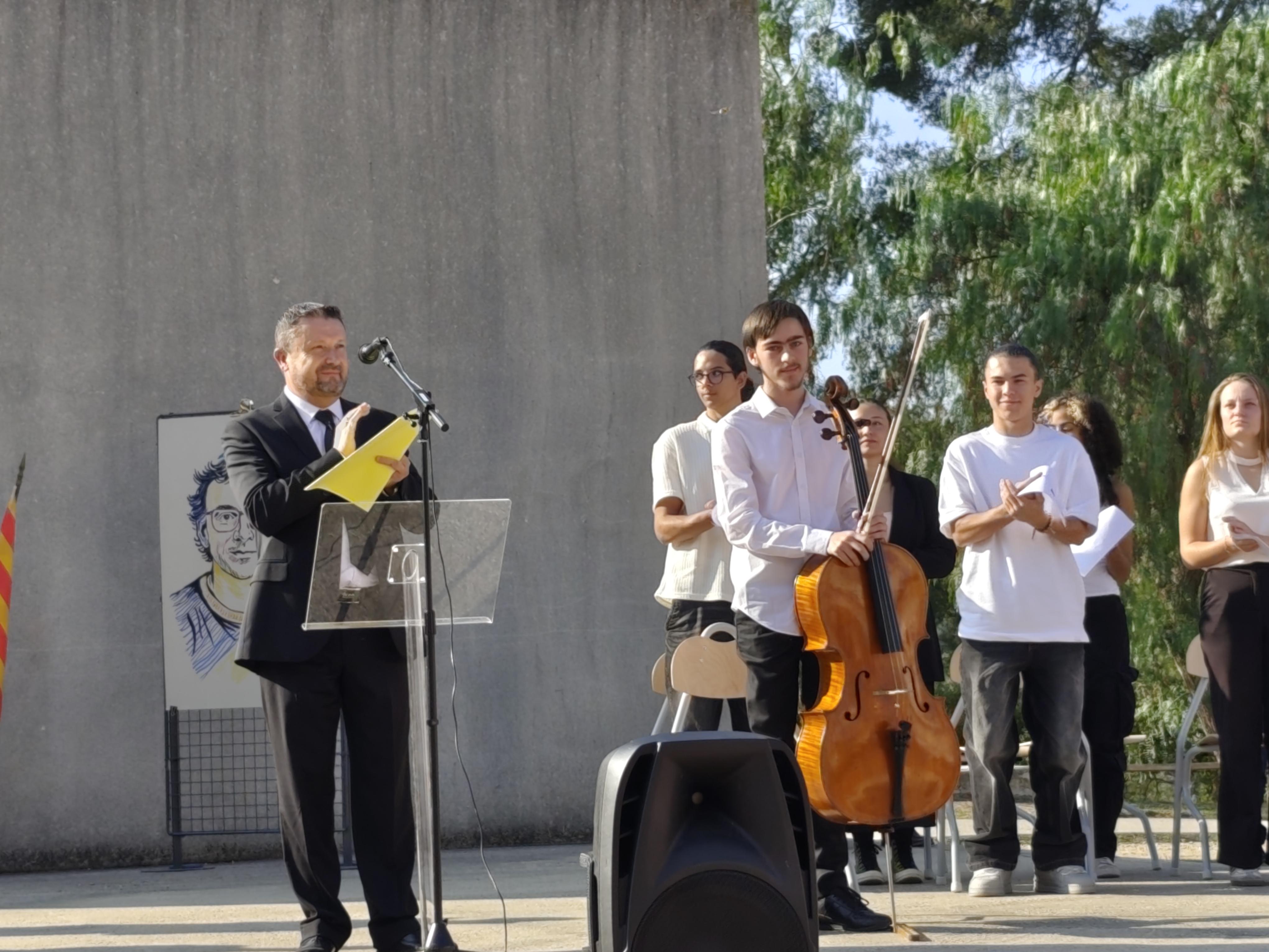Ce jeudi 16 octobre 2025, j'étais invité, en présence de Monsieur le préfet du Var et du directeur académique du Var, au lycée Costebelle de Hyères pour la cérémonie d'hommage à Samuel Paty et Dominique Bernard.